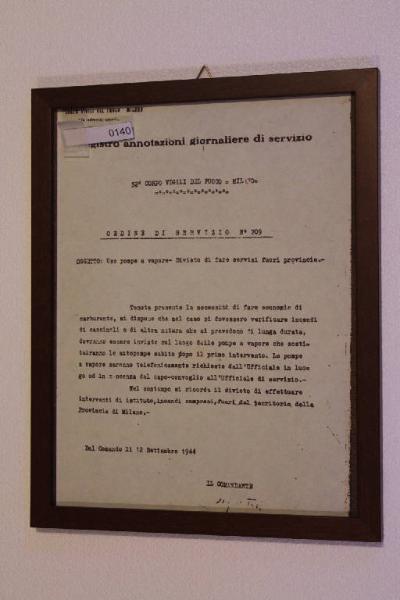 Quadro contenente ordine di servizio 209 data 12-09-1944