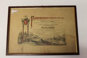 Quadro con diploma con medaglia di bronzo e argento assegnate al Corpo Pompieri Civici Di Milano dalla federezione ginnastica italiana 09-10-1910
