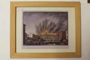 Quadro con stampa rappresentante manovre dei pompieri zappatori in P.zza Santa Maria Delle Grazie