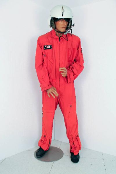 Manichino con uniforme da elicotterista in cotone rosso casco da volo mod. Gentex SPH/4 Nucleo Regionale periodo di impiego dal 1995