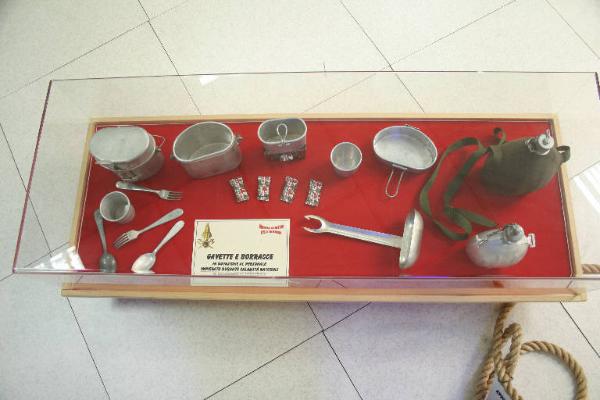 Teca contenente gavette e borracce in dotazione al personale impiegato durante le calamita' naturali periodo uso 1945 al 1970