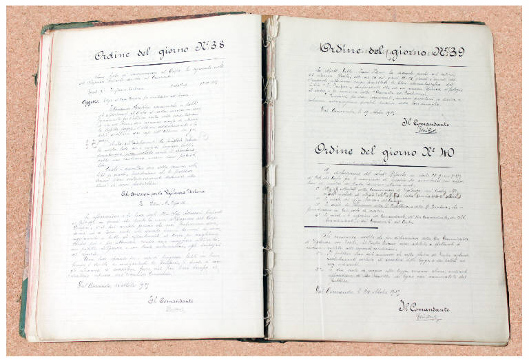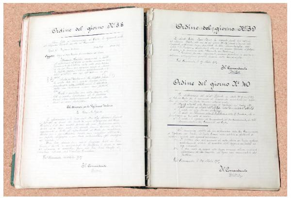 Teca contenente libraccio riportante gli Ordini Del Giorno emanati dal Comune inerenti le attività del 52° Corpo VV.F. Milano dell'anno 1925