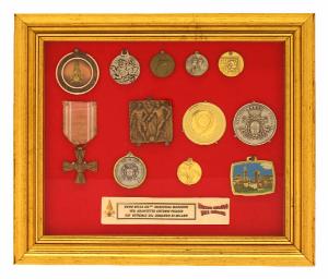 Quadro contenente medaglie varie