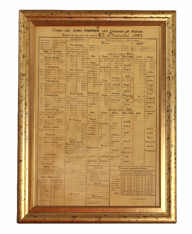 Quadro con foglio di servizio 25-12-1925