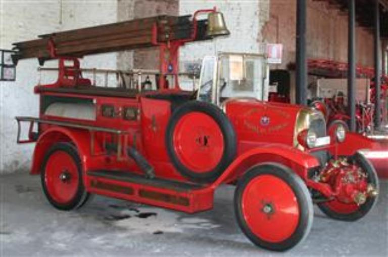 Autopompa antincendio con 6 manichette da 70 mm da 25 m cadauna e 5 manichette da 45 mm da 20 m cadauna su ogni lato, 2 lance da 70 mm in ottone, 1 tubazione di aspirazione rigida da 100 mm con succhieruola (filtro),campana d'allarme in ottone a battente, scala Italiana in legno composta da 4 pezzi con innesto a baionetta per una lunghezza totale di 10,33 m