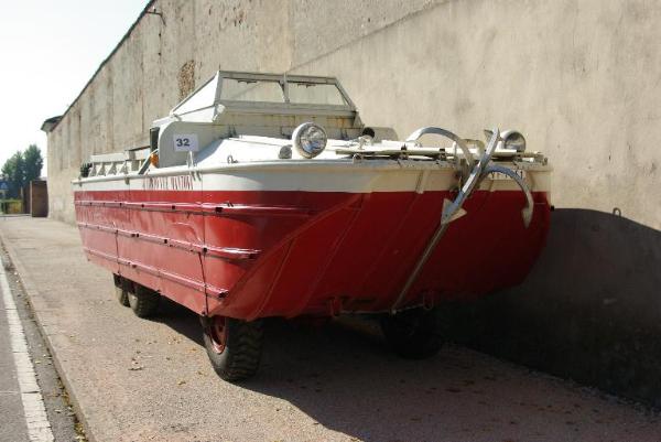 ANFIBIO GMC\nTarga VF 7851\nTelaio 353 - 17616\nAnno 1943\nMotore gmc 6 cilindri benzina\nPotenza 95HP a 3200 giri/min\nCapacità di trasporto di 40 persone o materiali fino a 50 quintali\nVelocità in acqua 14km/h\nVelocità su strada 85 km/h\nDotato di trazione integrale sui 3 ponti