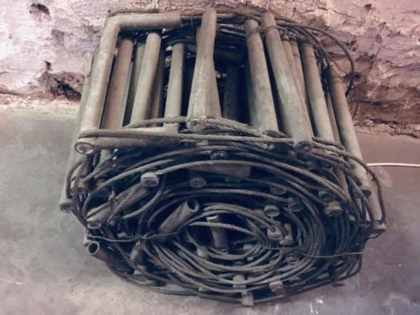 Montanti costituiti da due funi ritorte di ferro del diametro di 15/18 mm, distanti tra loro di cm 25, gradini di ferro, lunga circa dieci metri