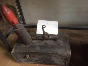 Apparato lancia sagole a cartuccia\nveniva attaccata una piccola cordicella alla spoletta da lanciare attaccandola ad una fune più grande per poterla usare per l'intervento di cui si aveva bisogno, poi lanciata con cartuccia dove serviva.