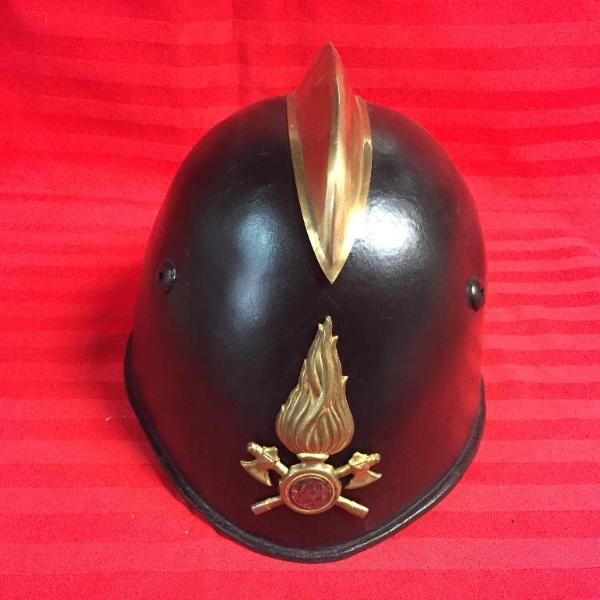 Elmo verniciato in cuoio nero, stemma in ottone e smalto con numero "48" (Mantova), cresta in ottone, marocchino e sottogola in cuoio