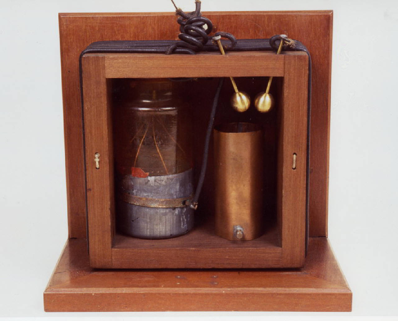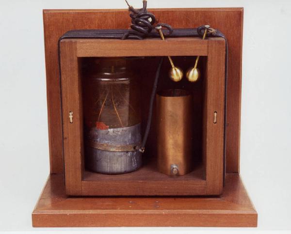 Un telaio verticale in legno reca sul perimetro esterno due avvolgimenti in rame (bobine quadrangolari) coassiali. Il primo avvolgimento è in serie con una bottiglia di Leida (condensatore) e con uno "spark-gap" (spinterogeno), entrambi contenuti all'interno del telaio. Le due sfere in ottone dello spinterogeno venivano collegate ai terminali di un rocchetto di Ruhmkorff, mentre l'altro avvolgimento veniva collegato all'antenna e alla presa di terra.