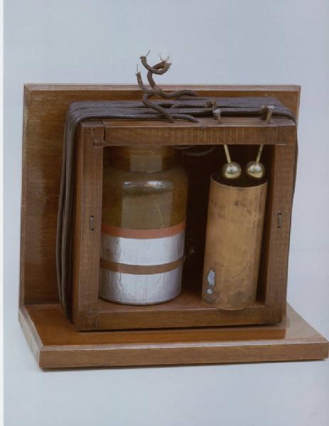 Un telaio verticale in legno reca sul perimetro esterno due avvolgimenti in rame (bobine quadrangolari) coassiali. Il primo avvolgimento è in serie con una bottiglia di Leida (condensatore) e con uno "spark-gap" (spinterogeno), entrambi contenuti all'interno del telaio. Le due sfere in ottone dello spinterogeno venivano collegate ai terminali di un rocchetto di Ruhmkorff, mentre l'altro avvolgimento veniva collegato all'antenna e alla presa di terra.