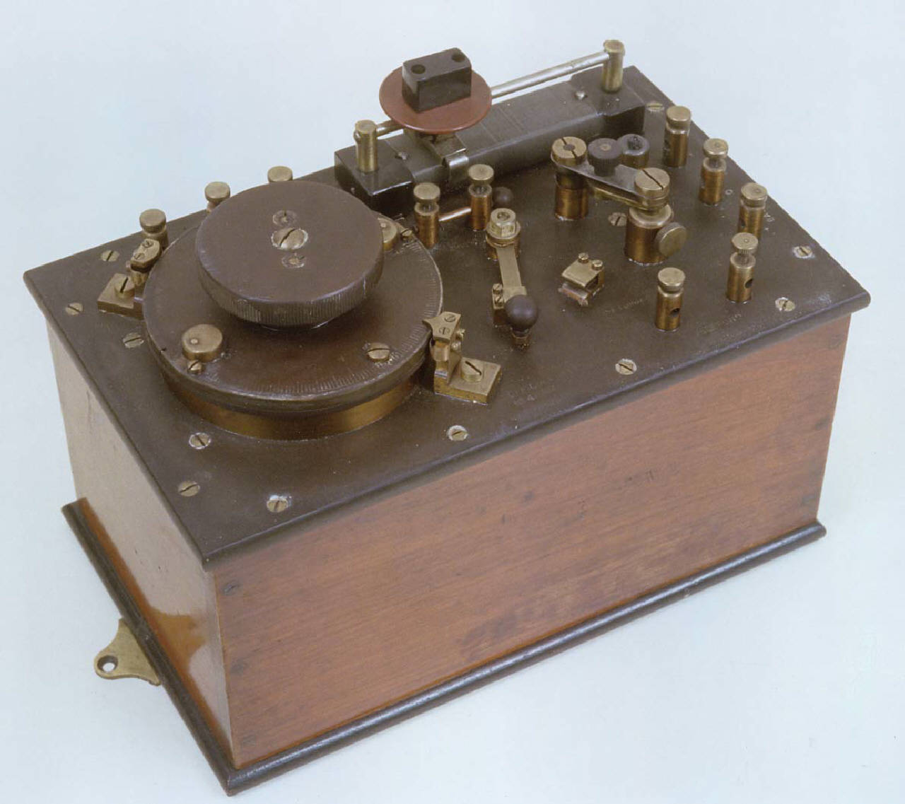 scatola in legno ed ebanite al di sopra della quale si trovano due sedi per i cristalli di carborundum, un condensatore variabile, un potenziometro variabile e infine i serrafili per i collegamenti alla batteria e la cuffia telefonica. Questo ricevitore era usato insieme al radiogoniometro Marconi Bellini Tosi n. inv. 2232
