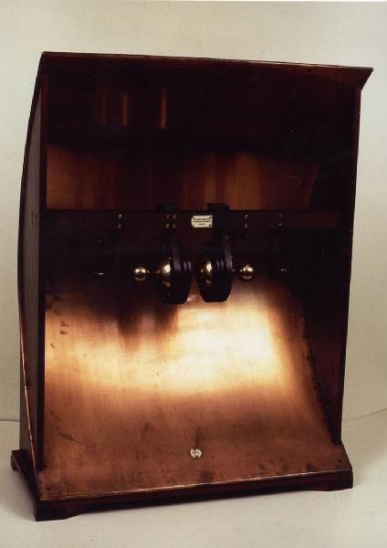 Questa copia, eseguita dalle Officine Galileo (?) di Firenze su commisione CNR (presidenza Marconi) per l'Esposizione Universale di Chicago del 1933, riproduce uno dei primi modelli di trasmettitore utilizzati da Guglielmo Marconi (1896-1897). E' costituito da un oscillatore di Righi a quattro sfere in ottone, montato su di un supporto in ebanite, e da uno specchio parabolico in rame sostenuto da una struttura in legno e metallo.