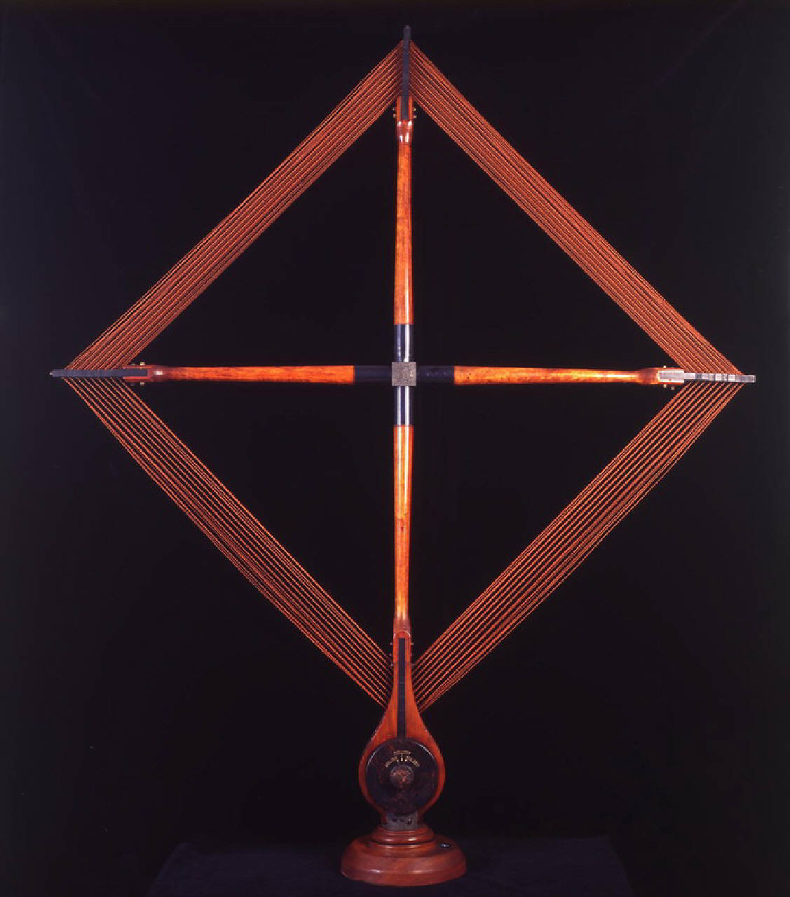 L'antenna è composta da un telaio in legno a forma di croce sostenuto da un piedistallo in legno di base circolare. I quattro vertici della croce recano dei blocchetti in ebanite che ospitano i diversi strati dell'avvolgimento di filo conduttore, una fitta ragnatela di filo di rame avvolto nella seta (?). Sul piedistallo in legno è presente una manopola in bachelite che permette di selezionare le lunghezze d'onda ricevibili attuando una preselezione (200-700 metri; 400-1400 metri, 900-2300 metri).