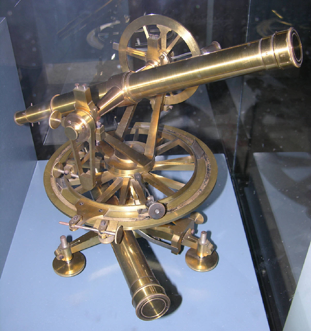 Il cannochiale principale è in grado di ruotare attorno a due assi perpendicolari tra di loro, uno verticale e l'altro orizzontale, secondo il classico schema di montatura altazimutale. Questa configurazione permetteva all'operatore di indirizzare il cannocchiale in una qualunque direzione permettendo un'agevole effettuazione della misura indipendentemente dalle condizioni del terreno circostante. L'asse orizzontale passa quasi esattamente per il punto centrale del cannocchiale e poggia su una struttura a forma di forcella. Il centro di tale forcella coincide con il centro di rotazione verticale. \nLo strumento poggia su tre piedi regolabili in altezza per mezzo di altrettante viti calanti. Per loro tramite era possibile effettuare la messa in bolla dello strumento, operazione indispensabile per garantire la correttezza delle misurazioni.\nDue cerchi graduati, uno verticale e uno orizzontale, erano imperniati ai due assi di rotazione e venivano utilizzati per la lettura degli angoli. La presenza di alcune lenti di ingrandimento opportunamente predisposte e di nonii di misura consentivano di ottenere una lettura del dato molto agevole e precisa. Il cerchio orizzontale è di diametro maggiore rispetto a quello verticale.\nDue viti di bloccaggio consentivano di fissare lo strumento una volta puntato nella direzione voluta. Due viti micrometriche permettevano quindi di muoverlo con la massima precisione al fine di effettuare le regolazioni più fini.\nIl cannocchiale di controllo è posizionato, invece, nella parte bassa dello strumento trovandosi al di sotto del cerchio graduato orizzontale e appena al di sopra del piano di appoggio. Il suo movimento era esclusivamente orizzontale: poteva, infatti, essere ruotato solo attorno all'asse verticale principale rispetto al quale, però, era leggermente disassato.