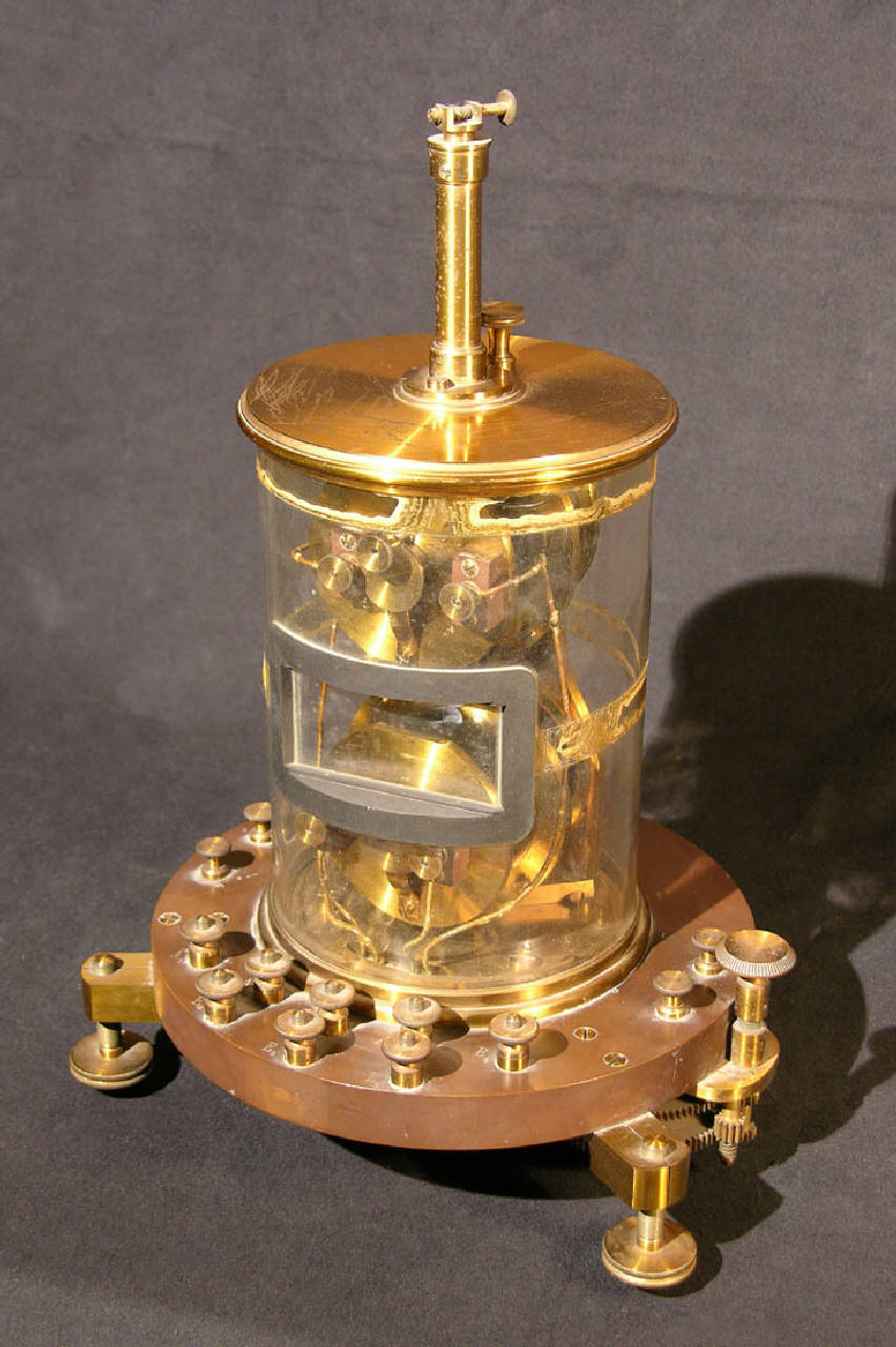 All'interno di un cilindro in vetro è ospitato un meccanismo elettromagnetico composto da un circuito e da un equipaggio mobile sospeso da un filo. Il circuito presenta due magneti a campana, ciascuno dei quali si trova in mezzo ad una coppia di bobine, mentre l'equipaggio mobile presenta uno specchio piano posto tra i due magneti a campana (i magneti e l'equipaggio, formano il cosiddetto sistema astatico dello strumento). Sulla parete del cilindro è ricavata la finestra attraverso la quale poter effettuare l'osservazione e la misura dello spostamento dell'equipaggio. Il cilindro è chiuso nella parte superiore da un coperchio in ottone dal centro del quale sale il tubo al cui interno è collocato il filo di sospensione. Il cilindro poggia su una base in bachelite sulla quale sono inseriti dodici morsetti per i collegamenti elettrici. La base è sorretta da tre piedini a vite calante utilizzati per la corretta messa in postazione dello strumento. Sotto la base del galvanometro si trova un sistema di ingranaggi collegati ad una delle due coppie di magneti.