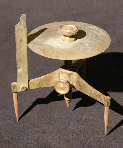 Lo strumento è formato da un disco metallico orizzontale sul cui bordo è incisa una scala graduata. Esattamente nel centro della faccia inferiore di questo disco è saldato un perno, anch'esso in metallo, che si innesta su una semplice struttura di supporto realizzata con tre gambe aventi tre punti di appoggio a punta. Lo scorrimento nel supporto di questo perno causa la salita o la discesa del disco. Su una delle gambe della base è saldata una riga metallica graduata che, alzandosi verticalmente, lambisce il bordo del disco consentendo una lettura di precisione. Una vite posizionata nel centro della faccia superiore del disco aiuta l'operatore a spostare il disco stesso mentre una seconda vite collocata sul treppiede permette di fissare il perno e quindi di bloccare lo spostamento.