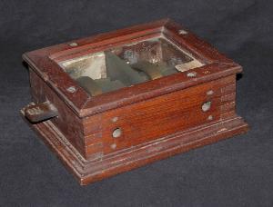 Lo strumento è costituito da una scatola in legno a forma di parallelepipedo; la faccia superiore è però chiusa da un vetro in modo da consentire la visione delle componenti interne dello strumento. All'interno è contenuto un apparato meccanico che può essere comandato manualmente dall'esterno grazie a una piccola sbarra che attraversa tutta la scatola uscendo per una piccola parte da due lati opposti. Lo spostamento della sbarra causa la rotazione contemporanea di due connettori metallici, in ottone e chiaramente visibili dall'esterno, che vanno a chiudere su un conduttore. Su uno dei lati della scatola sono presenti alcuni fori per consentire il collegamento dello strumento ad un circuito elettrico.\nQuesto meccanismo era di norma utilizzato come interruttore per l'accensione e lo spegnimento di un circuito.