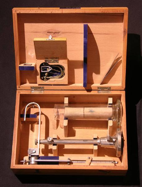 Questo strumento è formato da più componenti. La struttura principale è costituita da un'asta metallica verticale sorretta e tenuta in posizione da una pesante base a sezione circolare. Sulla base una vite micrometrica permette la corretta messa in postazione dello strumento. All'estremità superiore dell'asta è inserita orizzontalmente e asimmetricamente una piattina, anch'essa metallica, su un lato della quale è agganciata, tramite uno snodo a cuscinetti, l'asta di misurazione. A tale asta veniva agganciato l'oggetto da pesare che veniva poi immerso in un liquido contenuto in un vaso di vetro cilindrico fornito in dotazione. L'altra estremità della piattina è ricurva verso l'alto e porta l'indice per la determinazione della posizione di equilibrio.\nCompletano la strumentazione un insieme di piccoli accessori. Il tutto è conservato nella sua cassa originale in legno.