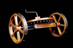 Il modello rappresenta un'assale di carro. Due ruote a otto raggi ruotano su due semiassi. Una delle due ruote ha un pignone montato sul suo semiasse: il pignone ingrana una ruota dentata dotata di manovella. L'altra ruota è montata su un semiasse indipendente