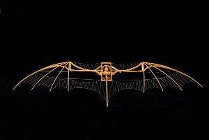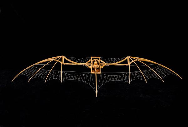 Il modello rappresenta un aliante formato da una struttura portante che collega le ali all'imbragatura. Un manichino di legno è posizionato verticalmente nell'imbragatura (senza parte delle braccia e delle gambe) e sporge con la testa dalla parte superiore dell'aliante. Le ali sono formate da una struttura ricurva a cui si innestano quattro canne per lato (a simulare le ossa cave nelle ali degli uccelli): il tutto è teso tramite corde e tiranti. La parte più esterna delle ali è divisa da quella interna da un perno che le permette di muoversi parzialmente. Due corde collegano l'estremità delle ali al pilota.
