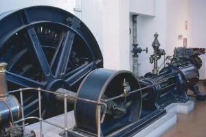 Questa centrale consta di due parti: una parte termica costituita da una macchina a vapore monocilindrica orizzontale ed una parte elettrica costituita da un alternatore e una dinamo eccitatrice. E' inoltre presente un quadro elettrico di controllo su lastra verticale in marmo e, ben evidente, un regolatore di Watt, posto in corrispondenza del cilindro, a controllo della macchina termica.