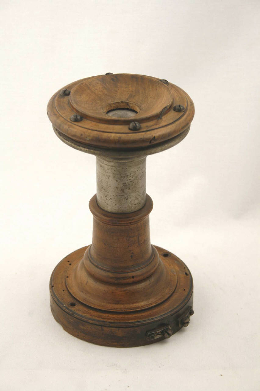 E' costituito da un piedistallo in legno, una custodia cilindrica di metallo e legno e un padiglione circolare di metallo e legno. All'interno della custodia cilindrica è presente un magnete ad U i cui poli recano due nuclei in ferro dolce sui quali sono inseriti due elettromagneti. I capi degli elettromagneti terminano ad una coppia di serrafili posti sul piedistallo. \nUna vite posta lateralmente sul piedistallo tiene in posizione il magnete ad U e permette la regolazione della distanza della membrana in ferro dolce contenuta all'interno del padiglione, in corrispondenza degli elettromagneti.\nManca il fischietto che, se posizionato nell'imboccatura, permetteva di dare l'avviso di chiamata prima della conversazione.