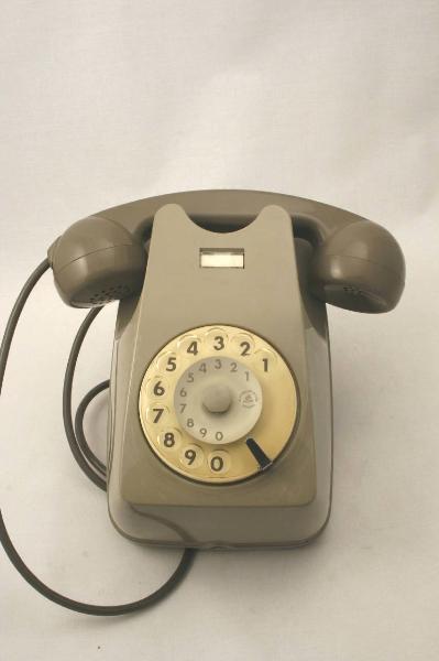 Questo telefono da muro, posta fissa, è costituito da una monoscocca in plastica grigia stampata che racchiude una suoneria e i meccanismi del combinatore. Nella parte anteriore della scocca è presente un foro da cui fuoriesce il disco combinatore in plastica trasparente, a dieci cifre da 1 a 0. Nella parte superiore della scocca sono ricavati due vani nei quali poggia il microtelefono, anch'esso in plastica stampata grigia. In questi due vani sono presenti due tasti di interruzione linea con funzioni di forcella. Il microtelefono racchiude il trasmettitore (microfono a carbone) e il ricevitore (a bobina e calamita), uniti da una parte centrale che funge anche da impugnatura. Dietro al telefono è presente una rotella per regolare il volume della suoneria.