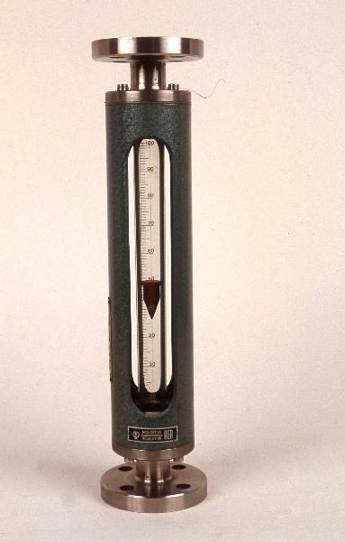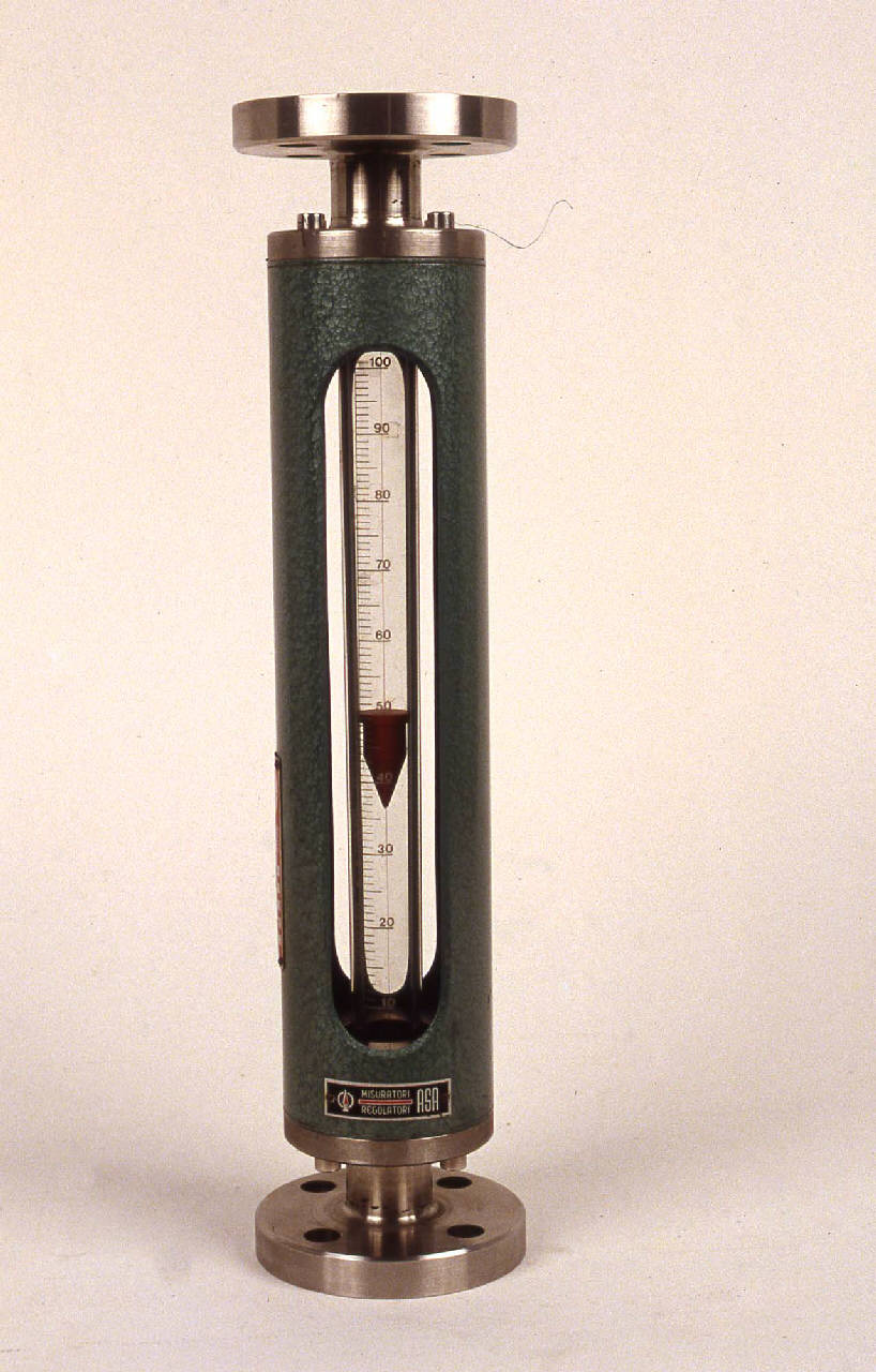 Lo strumento è composto da un cilindro metallico cavo, a sezione circolare, sulla cui parete sono ricavate due fessure diametralmente opposte, lunghe quasi quanto il cilindro stesso. Nella parte centrale del cilindro, lungo l'asse, è posizionato un tubo in vetro sul quale è riportata la scala graduata che va da 10 a 100 con tacche ogni unità e indicazione numerica ogni 10. Il rocchetto che veniva introdotto nel tubo di vetro e che si posizionava alla quota corrispondente alla portata permettendo la lettura sulla scala graduata, è attualmente conservato separatamente dal tubo stesso. Il tubo è mantenuto in posizione assiale grazie a due dischi metallici posizionati alle estremità del cilindro metallico. Superiormente e inferiormente al tubo stesso sono presenti due flange per il posizionamento all'interno dell'impianto da controllare. E' inoltre presente il rocchetto che veniva introdotto nel tubo di vetro e che si posizionava alla quota corrispondente alla portata.