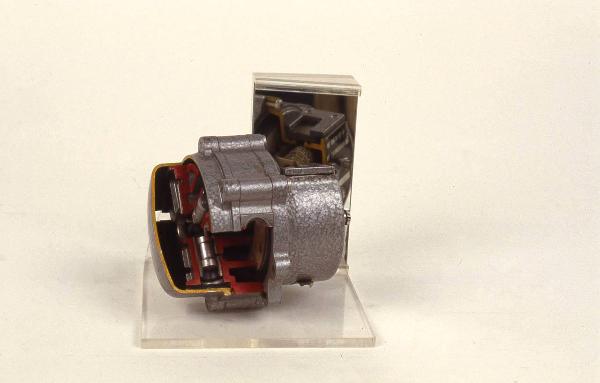 Lo strumento, che ha forma cilindrica, è sezionato in alcune parti. E' così possibile osservare i meccanismi interni di funzionamento. Nella parte superiore sono presenti quattro piccole ruote numerate, montate coassialmente, che costituiscono il contatore vero e proprio. Nella parte posteriore sono montati quattro piccoli pistoni che possono scorrere all'interno di altrettanti cilindri. Lo strumento, che ha scopo didattico rappresentativo, è attualmente posizionato su di una base in plastica trasparente a soli scopi espositivi.
