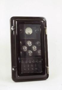 Lo strumento è costitutito da una scatola metallica di forma parallelepipeda chiusa da un coperchio con finestra in vetro. Lo sportello è incernierato sul lato sinistro e chiuso per mezzo di due leve. Nella parte superiore è posizionato il quadro di controllo. Su di esso sono inserite due manopole poste ai lati opposti di un milliamperometro. Questo ha forma circolare con scala graduata semicircolare tra 0 e 100 mA, indicazione numerica ogni 20 e tacche ogni 2 unità. Nella parte inferiore dello strumento sono collocati una fila di sette fusibili ognuno dei quali ha valore di 100 mA. Al di sotto di questa fila di fusibili si trovano quattro interruttori a leva il cui spostamento permette di abilitare uno dei sette connettori collocati nella parte centrale dello strumento. Le pareti dello strumento sono in parte forate per consentire il passaggio dell'aria e quindi il raffreddamento. Su entrambi i lati sono poi presenti due pannelli con cinque connettori da un lato e otto dall'altro, per i collegamenti elettrici. Lo strumento veniva utilizzato in posizione verticale inserito in un quadro di controllo.