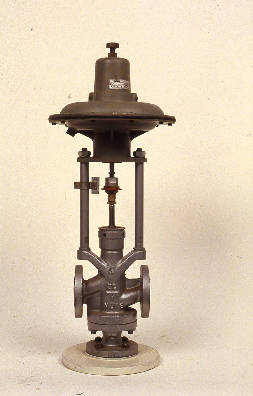 La parte principale dello strumento ha forma cilindrica ed è dotata di due flange per l'inserimento nel circuito da controllare. Nella parte superiore è ricavato un foro all'interno del quale è posizionato un asse metallico. L'estremità di questo asse si inserisce in una camera di compressione a forma di disco. Nella parte superiore di questa camera è posizionata una vite di regolazione. La camera è vincolata alla parte sottostante dello strumento tramite due piccole aste metalliche. Su una di queste è posizionato un indice di controllo.