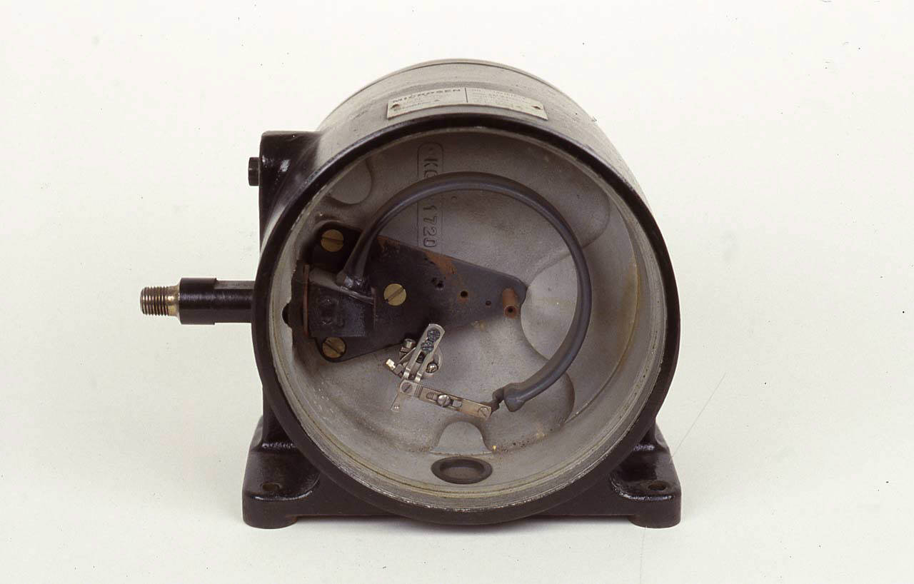 Lo strumento ha una funzione didattico esplicativa ed è infatti privo del quadrante. E' pertanto possibile vedere il meccanismo di funzionamento interno. Lo strumento ha forma cilindrica e presenta sul lato un connettore a vite per il collegamento al circuito pneumatico da misurare. Essendo privo del pannello frontale si può apprezzare il meccanismo interno costituito da un tubo cavo, piegato a forma circolare, alla cui estremità è collegato un sistema di leve.Questo trasmette lo spostamento, dovuto alla pressione circolante, alla lancetta di indicazione. Lo strumento è dotato di una base per il fissaggio. Nella parte superiore è collocata una targa metallica incisa sulla quale sono riportate alcune informazioni come il nome della ditta produttrice, il nome strumento e le modalità di utilizzo. La parte posteriore è costituita da un coperchio sul quale sono riportate in rilievo alcune avvertenze per l'utilizzo.