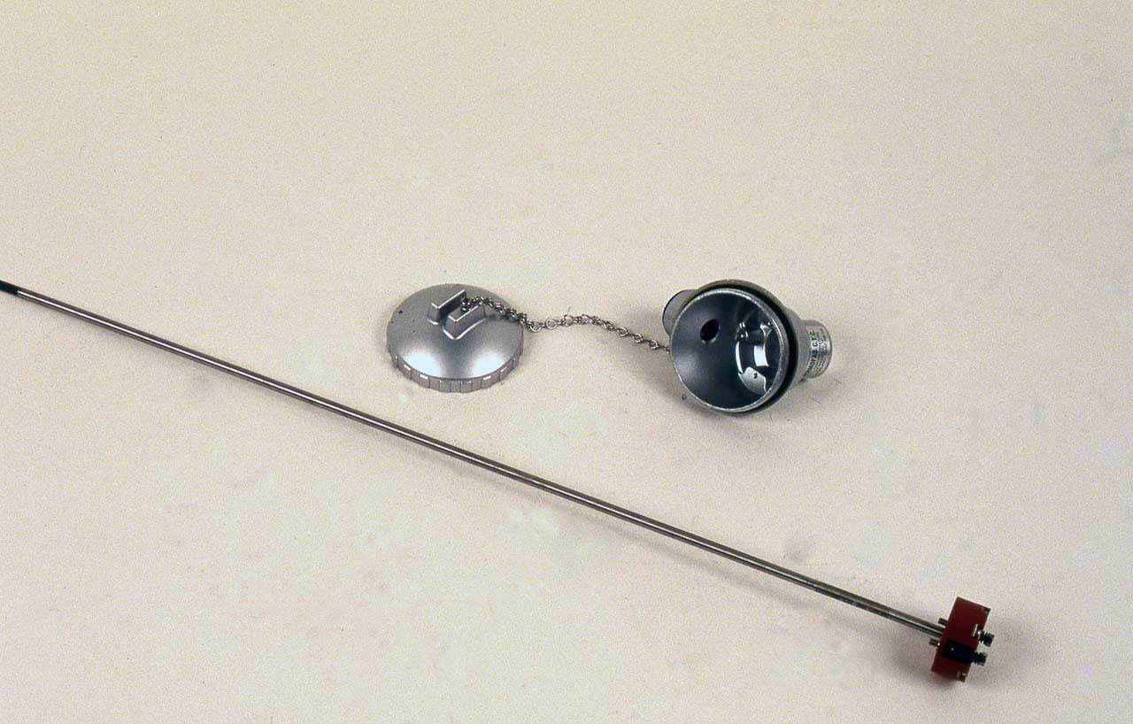 Lo strumento è composto da una scatola in metallo di forma approssimativamente a tronco di cono. La scatola è apribile con un coperchio a vite solidale alla scatola stessa tramite una catenella. Nella scatola è ricavato un foro nel quale si inserisce la sonda, costituita da un'asta metallica di forma cilindrica la cui estremità è aperta e al cui interno è presente la termocoppia. La termocoppia è isolata dal tubicino che la contiene per mezzo di una sostanza minerale. L'estremità della sonda all'interno della scatola termina su una base circolare in plastica con due viti per il fissaggio. Su tale base sono presenti i morsetti per i collegamenti elettrici. I fili conduttori potevano uscire dallo strumento attraverso un foro posizionato perpendicolarmente al precedente.
