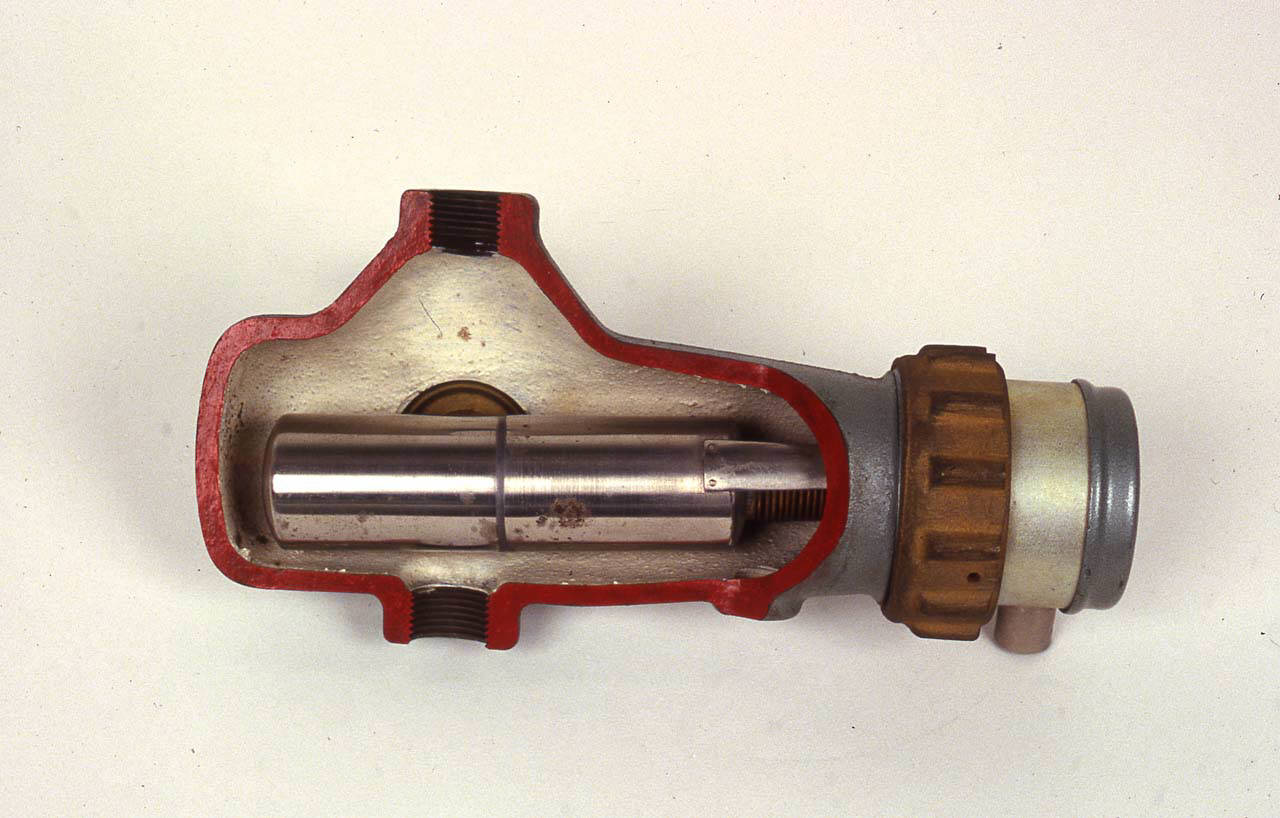Lo strumento ha funzione prettamente didattico esplicativa essendo sezionato lungo tutta la sua lunghezza in modo da poterne osservare il principio di funzionamento e i meccanismi interni. E' costitutito da una camera metallica di forma cilindrica sulla cui parte inferiore è praticato un foro attraverso il quale è inserito un cilindro metallico dotato di contatti elettrici nella parte inferiore. Questo cilindro è tenuto in posizione da una ghiera a vite mentre i contatti elettrici sono protetti da un coperchio metallico sul cui lato è ricavato un foro per il passaggio dei fili. Sulla parete dello strumento sono presenti quattro fori filettati di vario diametro per il collegamento al circuito da regolare. Nella parte inferiore è applicata una targa metallica di forma circolare sulla quale sono stampati il nome del produttore e le istruzioni per il montaggio dello strumento.