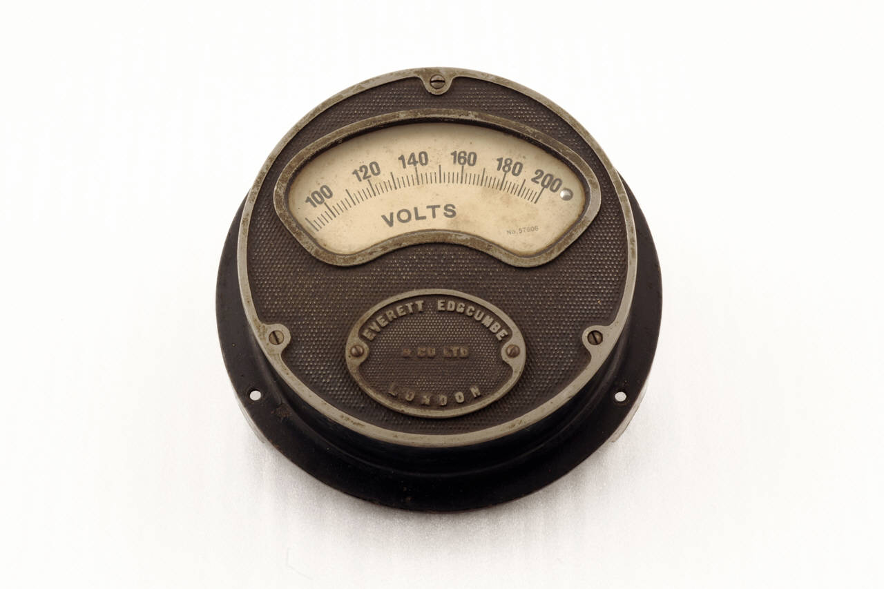 Questo strumento da pannello ha forma circolare. La struttura principale, cilindrica, è sostanzialmente metallica ma lo strumento è caratterizzato da una finestrella in vetro che occupa la parte superiore di una delle superfici. Attraverso la finestrella è possibile vedere il quadrante di misura ed effettuare la lettura della grandezza fisica misurata. La lancetta indicatrice è imperniata nella parte inferiore dello strumento ma ne è visibile solo la punta. La scala graduata, che ha la forma di un arco di circonferenza, permette misure tra 90 e 200 Volt, con tacche ogni 2 unità e indicazione numerica ogni 20. La struttura dello strumento termina, dalla parte opposta alla finestra di lettura, con una flangia che ne permetteva l'inserimento sul pannello. Sul retro dello strumento sono presenti fori per l'inserimento dei collegamenti elettrici al circuito da misurare.