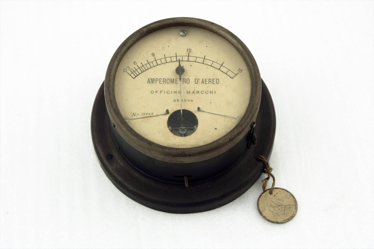 Questo strumento ha forma tipicamente circolare ed il quadrante, che occupa tutta la superficie superiore, è ricoperto e protetto da un vetro. La scala, che è disposta secondo un arco di circonferenza nella parte superiore del quadrante, permetteva di misurare quantità comprese tra 3 e 15 Ampere ed è suddivisa con tacche ogni 0,5 unità ed indicazione numerica ogni 3. La lancetta indicatrice è imperniata nella parte inferiore del quadrante. La struttura metallica, di forma cilindrica, dello strumento termina, dalla parte opposta alla finestra di lettura, con una flangia che ne facilitava l'inserimento su un quadro di controllo generale. Sul retro dello strumento sono presenti i fori per i collegamenti elettrici al circuito da misurare.