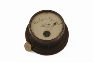 Questo strumento ha forma tipicamente circolare ed il quadrante, che occupa tutta la superficie superiore, è ricoperto e protetto da un vetro. La scala, che è disposta secondo un arco di circonferenza nella parte superiore del quadrante, permetteva di misurare quantità comprese tra 0 e 20 Ampere ed è suddivisa con tacche ogni unità ed indicazione numerica ogni 5. La lancetta indicatrice è imperniata nella parte inferiore del quadrante. La struttura metallica, di forma cilindrica, dello strumento termina, dalla parte opposta alla finestra di lettura, con una flangia che ne facilitava l'inserimento su un quadro di controllo generale. Sul retro dello strumento sono presenti i fori per i collegamenti elettrici al circuito da misurare.