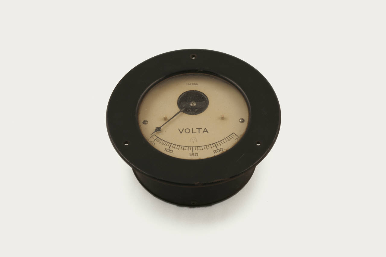 Questo strumento ha forma tipicamente circolare ed il quadrante, che occupa gran parte della superficie superiore, è ricoperto e protetto da un vetro. La scala, che è disposta secondo un arco di circonferenza nella parte inferiore del quadrante, permetteva di misurare quantità comprese tra 50 e 250 Volt ed è suddivisa con tacche ogni 5 unità ed indicazione numerica ogni 50. La lancetta indicatrice è imperniata nella parte superiore del quadrante. La struttura metallica, di forma cilindrica, dello strumento si allarga intorno al quadrante a formare una flangia che ne facilitava l'inserimento su un quadro di controllo generale. Sul retro dello strumento sono presenti i serrafili per i collegamenti elettrici al circuito da misurare.