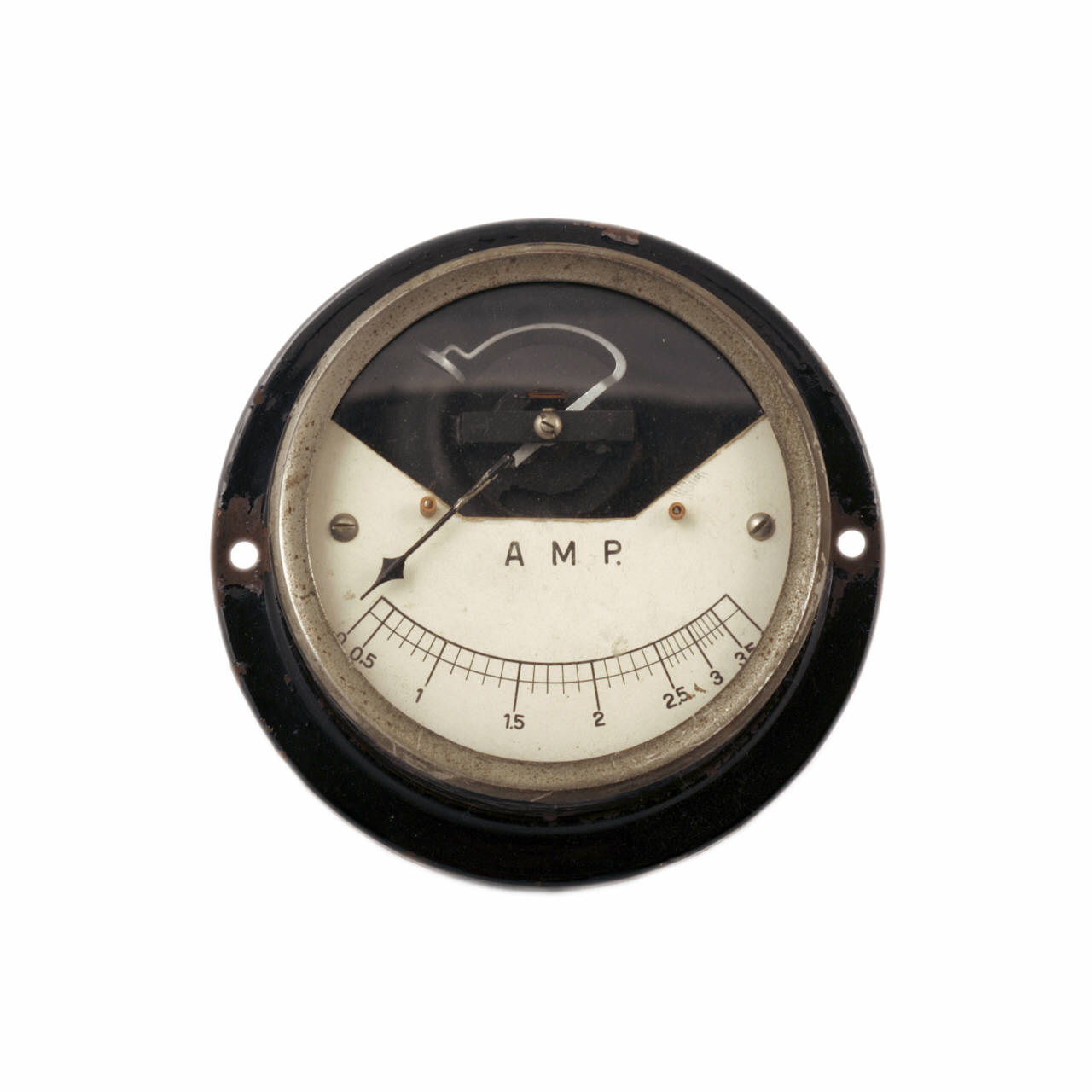 Questo strumento ha forma tipicamente circolare ed il quadrante è ricoperto e protetto da un vetro. La scala, che è disposta secondo un arco di circonferenza nella parte inferiore del quadrante, permetteva di misurare quantità comprese tra 0,5 e 3,5 Ampere ed è suddivisa con tacche ogni 0,1 unità ed indicazione numerica ogni 0,5 unità. La lancetta indicatrice è imperniata nella parte superiore del quadrante. dalla parte superiore del quadrante è possibile vedere parte del meccanismo di funzionamento interno. La struttura metallica, di forma cilindrica, dello strumento termina, dalla parte opposta alla finestra di lettura, con una flangia che ne facilitava l'inserimento su un quadro di controllo generale. Sul retro dello strumento sono presenti i serrafili per i collegamenti elettrici al circuito da misurare.