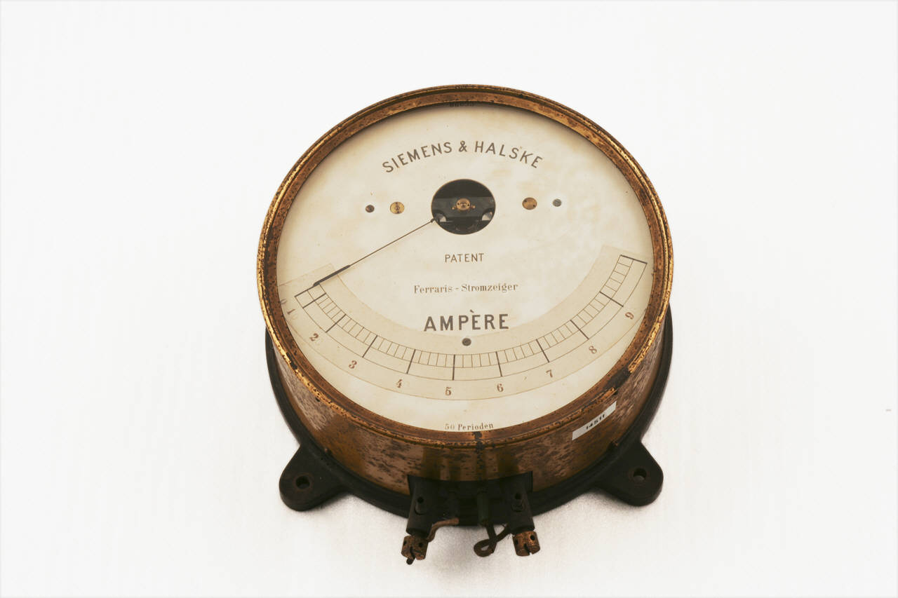 Questo strumento ha forma tipicamente circolare ed il quadrante è ricoperto e protetto da un vetro. La scala, che è disposta secondo un arco di circonferenza nella parte inferiore del quadrante, permetteva di misurare quantità comprese tra 1 e 10 Ampere ed è suddivisa con tacche ogni 0,2 unità ed indicazione numerica ogni unità. La lancetta indicatrice è imperniata nella parte superiore del quadrante. La struttura metallica, di forma cilindrica, dello strumento termina, dalla parte opposta alla finestra di lettura, con una flangia che ne facilitava l'inserimento su un quadro di controllo generale. Sotto allo strumento sono presenti i connettori per i collegamenti elettrici al circuito da misurare.