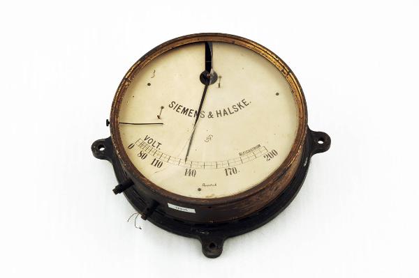Questo strumento ha forma tipicamente circolare ed il quadrante è ricoperto e protetto da un vetro. La scala, che è disposta secondo un arco di circonferenza nella parte inferiore del quadrante, permetteva di misurare quantità comprese tra 50 e 200 Volt ed è suddivisa con tacche ogni 5 unità ed indicazione numerica ogni 30 (a partire da 80). La lancetta indicatrice è imperniata nella parte superiore del quadrante. La struttura metallica, di forma cilindrica, dello strumento termina, dalla parte opposta alla finestra di lettura, con una flangia che ne facilitava l'inserimento su un quadro di controllo generale. Sotto allo strumento sono presenti due connettori per i collegamenti elettrici al circuito da misurare.