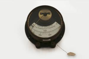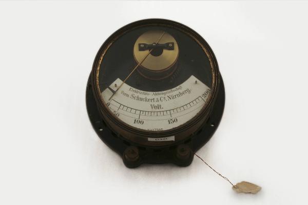 Questo strumento ha forma tipicamente circolare ed il quadrante occupa la metà inferiore della superficie circolare ed è protetto da un vetro. La scala, che è disposta secondo un arco di circonferenza nella parte inferiore del quadrante, permetteva di misurare quantità comprese tra 50 e 200 Volt ed è suddivisa con tacche ogni 5 unità ed indicazione numerica ogni 50. La lancetta indicatrice è imperniata nella parte superiore del quadrante ed in quella zona frontale è parzialmente visibile il meccanismo di funzionamento interno. La struttura metallica, di forma cilindrica, dello strumento termina, dalla parte opposta alla finestra di lettura, con una flangia che ne facilitava l'inserimento su un quadro di controllo generale. Sotto allo strumento sono presenti due connettori per i collegamenti elettrici al circuito da misurare.