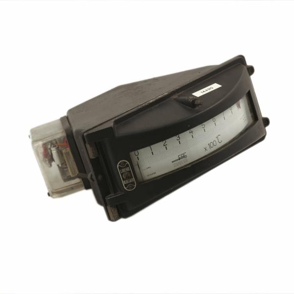 Lo strumento, osservato dal davanti, ha la forma rettangolare tipica degli strumenti da quadro. E' dotato di uno sportello apribile incernierato sul lato sinistro e di forma bombata. Nella parte centrale è posizionata una finestra in vetro attraverso la quale è possibile leggere la scala graduata. Questa va da 0 a 1000 °C, con indicazioni numeriche ogni 100 e tacche ogni 10 unità. A sinistra del quadrante è presente una vite per il bloccaggio/sbloccaggio del cursore. Dietro allo sportello sono presenti due viti per il fissaggio al quadro di controllo. Nella parte posteriore lo strumento si restringe fino ad assumere una forma trapezoidale. Dal lato obliquo di sinistra sporge un coperchio in plastica trasparente che ricopre e protegge parte del meccanismo di funzionamento in cui è visibile una piccola ampolla contenenete mercurio la cui inclinazione causava l'apertura o la chiusura di un circuito elettrico, costituendo quindi una sorta di interruttore. Sul lato posteriore sono presenti sette connettori per i collegamenti elettrici.