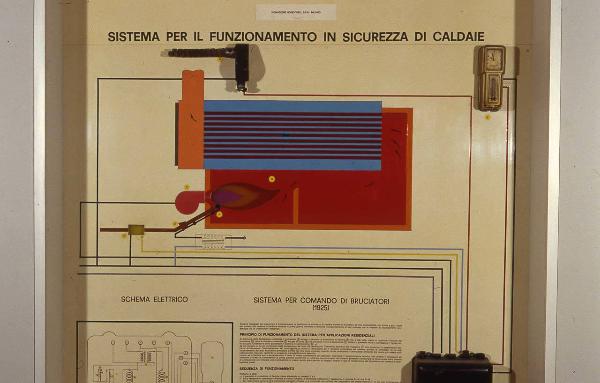 Il sistema è composto di tre parti. La parte preposta al controllo si presenta come una scatola metallica di forma rettangolare chiusa da un coperchio, fissato per mezzo di due viti laterali. All'interno, su una base in materiale isolante, sono fissate alcune componenti elettriche: un trasformatore, due relais, un interruttore di reset ed una serie di morsetti per i collegamenti elettrici. Al di sopra di ciascuno dei due relais è avvitata una targhetta metallica sulla quale sono stampigliati il nome della ditta produttrice e le caratteristiche elettriche dell'apparato. Nella parte superiore sono ricavati cinque fori attraverso i quali passavano i cavi elettrici. Sul coperchio è avvitata una targa metallica con stampato il nome dello strumento, il nome della ditta produttrice e le caratteristiche funzionali dello strumento stesso. Il sistema presenta inoltre un cronotermostato di forma rettangolare. Nella parte superiore vi è un orologio, mentre nella parte inferiore il termometro di controllo ad alcol con, più sotto, il controllo per l'impostazione della temperatura di funzionamento per un intervallo di valori compreso tra 55 e 85 °C. Il termometro è dotato di una scala compresa tra 0 e 100 °C. Nella parte posteriore, una serie di morsetti consentivano i collegamenti elettrici.\nLa terza componente di questo sistema è costituita da un pirostato. Questo è formato da una sonda metallica a forma di piccola asta, ricoperta da una parete elicoidale. La base del pirostato ha forma vagamente tiangolare ed un'estremità presenta il foro per il collegamento elettrico. Sulla base del pirostato un'etichetta metallica riporta stampato il nome dello strumento, la casa produttrice ed alcuni dati fondamentali per l'utilizzo.\nOriginariamente le tre parti erano montate su un pannello didattico esplicativo che illustrava il sistema di funzionamento.