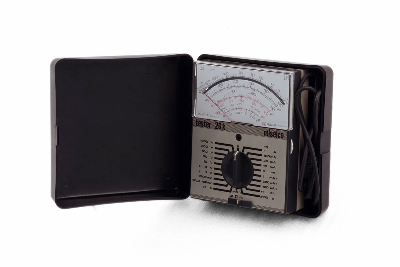Ciascuno di questi tester è dotato di un astuccio in plastica nera che contiene lo strumento di misura, una coppia di puntali (mancante in due casi) e un manuale di istruzioni per l'uso (mancante in due casi). Ciascun tester è di forma parallelepipeda e presenta, sulla faccia superiore, il quadrante con le scale di lettura delle misure, un commutatore rotante per la selezione della portata richiesta, un deviatore a slitta per la selezione della tipologia del segnale.\nSono presenti cinque scale di lettura. Una scala non lineare, di colore nero, per le misure di resistenza (da 0 a 10 KOhm); una scala, di colore nero, per misure di corrente continua, tensione continua e alternata (con scala graduata da 0 a 100 per le correnti e da 0 a 30 per le tensioni, che permette misure diverse a seconda della portata stabilita) e per misure di uscita in V BF (da 10 a 1000); una scala di colore rosso per misure di corrente alternata (fino ad 1A); una scala rossa e nera che permette misure di tensione in uscita in dB (lato in rosso, da -10 a +21) e misure di capacità (lato in nero, da 0,1 a 10µF).\nIl commutatore rotante permette di selezionare la portata: da 100mV a 1000V, da 50µA a 10A, da 10µF a 10.000µF (posizionandolo rispettivamente su x1Ohm, x1KOhm).\nIl deviatore presenta tre posizioni possibili: misure di grandezze continue (=), misure di grandezze alternate (~), misure di resistenze e capacità (Ohm).\nLateralmente è inserita una rotella per il posizionamento a zero dell'indice dello strumento.\nSuperiormente sono posizionate le boccole per i collegamenti dei puntali: una per la messa a terra, una per le misure con portata 10A, l'altra per i collegamenti nelle altre combinazioni possibili (altre portate, misure di uscita e di resistenze e capacità).\nPer le misure di resistenza è necessario inserire due pile da 1,5V.