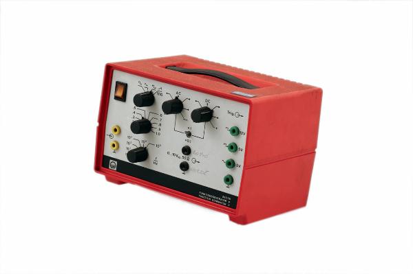Lo strumento è costituito da una custodia in plastica di forma parallelepipeda e poggia su due piedini retraibili in plastica. Superiormente è presente una maniglia in gomma per il trasporto.\nIl pannello frontale è interamente occupato dalle manopole di regolazione e dalle boccole per i collegamenti in entrata ed in uscita. Oltre all'interruttore per l'accensione, sono presenti due manopole di regolazione della frequenza (da 0,1 Hz a 100 kHz regolabili con continuità in un campo distribuito su sei decadi), una di regolazione della forma del segnale (sinusoidale, triangolare, quadra, a rampa; con rapporto pausa/impulso di 1:1 per l'onda quadra e 19:1 a f/10 per quella a rampa), due manopole per regolare le intensità delle correnti alternata AC o continua DC, un interruttore per il cambio di scala (x 0,1). I collegamenti in entrata avvengono tramite due boccole da 4mm di colore giallo posizionate alla sinistra del pannello e le uscite dei segnali tramite le boccole da 4mm verdi e nere: le uscite trigger avvengono sulle quattro boccole verdi con tensioni fisse di 5 V (segnale triangolare e rettangolare) e 12 V (segnale rettangolare), le uscite di potenza (per tutti i segnali, commutabili), con tensione da 0 a 10 Vss con 50 Ohm (variabili con continuità), avvengono tramite le due boccole nere.\nSulla faccia posteriore è presente la presa per la connessione alla rete elettrica. Il cavo di connessione è mancante. Sono inoltre presenti delle prese d'aria e tre etichette contenenti i dati dell'azienda costruttrice e i dati tecnici dello strumento.