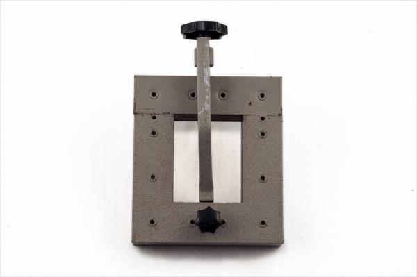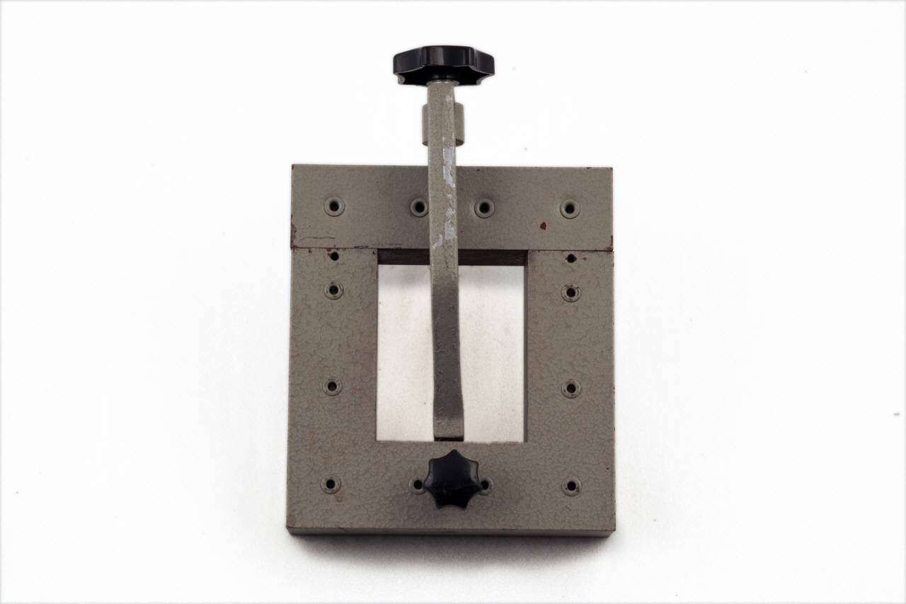 Questo dispositivo è costituito da un nucleo ad U in lamiera di ferro lamellata, con giogo per la chiusura. All'interno della base è situato un foro in cui si inserisce il dispositivo di fissaggio del giogo al nucleo.\nTale dispositivo, costituito da una staffa d'alluminio, viene poi fissato con una vite a morsetto.\nIl dispositivo di fissaggio è completato superiormente da una vite che comprime il giogo sul nucleo stesso, assicurando la chiusura magnetica dell'apparato.