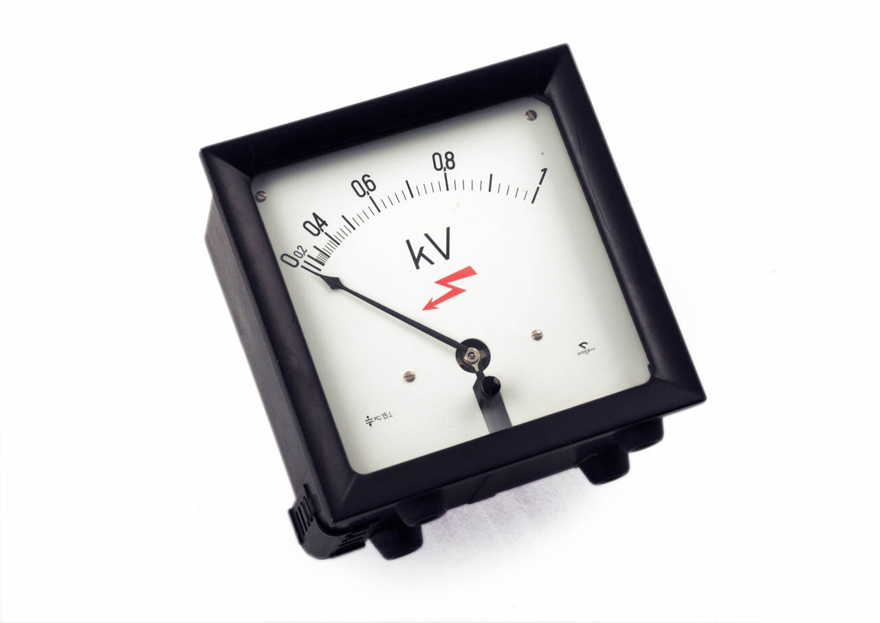 Questo voltmetro è racchiuso in una custodia in materiale plastico e metallo. La parete frontale, quadrata e protetta da un vetro, è interamente occupata dal quadrante di lettura: un lancetta indicatrice, imperniata nella parte inferiore, indica la tensione misurata su una scala di lettura semicircolare posta nella parte superiore del quadrante. Il campo di misura va da 0 a 1kV con scala suddivisa in 20V, con inizio a 200V, e indicazione numerica ogni 200V. Nel punto di fissaggio della lancetta è posizionata una vite per la regolazione del punto zero. Sul retro sono presenti i connettori elettrici, uno ad alto isolamento e l'altro per la messa a terra. Mancano le boccole isolanti normalmente posizionate sui connettori. E' invece aggiunto un morsetto per i collegamenti. Sono inoltre presenti due viti per il fissaggio dello strumento nell'allestimento dell'esperienza didattica.