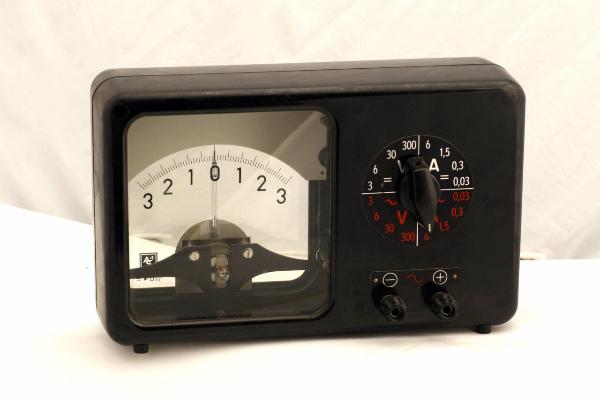 Lo strumento ha forma parallelepipeda e può essere posizionato sia in verticale che in orizzontale, presenta infatti quattro piedini in gomma sia sul fondo (tre mancanti) che sul retro. Nella custodia sono incorporate tutte le resistenze in serie e in derivazione proprie dello strumento.\nPosizionato in verticale, da una parte troviamo un commutatore dei campi di misura che permette misure di correnti continue ed alternate di 0,03/0,3/1,5/6A e misure di tensioni continue ed alternate di 3/6/30/300V e due morsetti a boccola per i collegamenti elettrici per tutti i campi di misura. Accanto, una finestrella in plastica trasparente permette la lettura della scala graduata, posizionata su un supporto trasparente, e la vista di parte del meccanismo di funzionamento. Sulla parete verticale opposta troviamo il quadrante di misura con scala graduata semicircolare con zero centrale che permette, tramite una lancetta indicatrice imperniata in basso, misure da -30 a +30 con suddivisioni ogni 0,1 e indicazioni numeriche ogni unità. Accanto al quadrante di misura un indice permette la lettura dei campi di misura impostati con il commutatore descritto precedentemente.\nLa scala dello strumento stampata su materiale trasparente permette la proiezione della lettura, per facilitare l'attività didattica.\nSul fianco dello strumento si trovano tre boccole da 4mm per l'entrata diretta nel meccanismo di misura (deviazione totale 1mA con 0,1V) e per le misure di resistenza.\nSotto allo strumento, uno sportellino apribile permette di accedere alla batteria necessaria per le misure di resistenza.